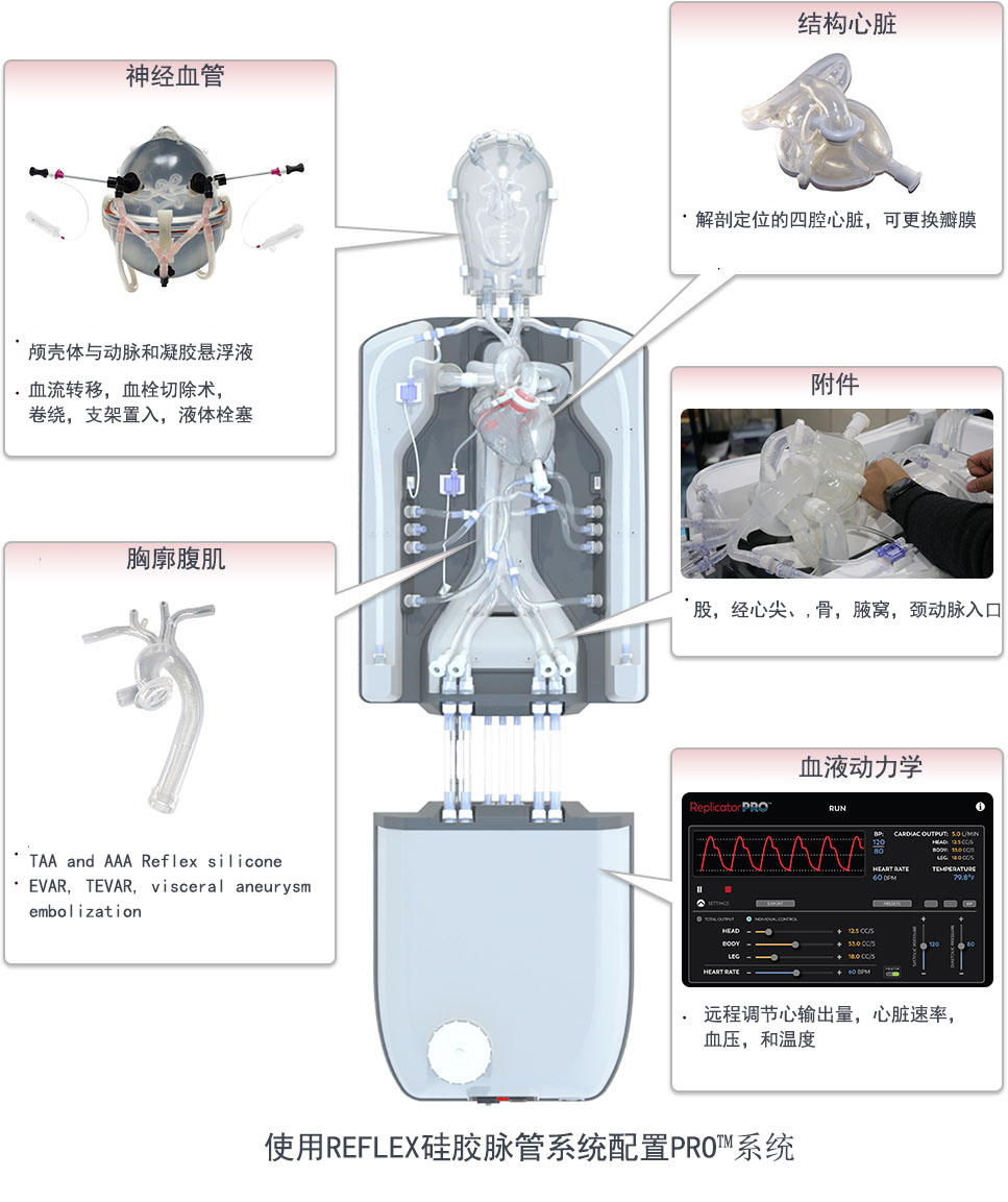 重復(fù)模擬具有真正生理功能的血管內(nèi)病例。?生理和解剖學(xué)上準(zhǔn)確的人類硅膠血管?在模擬血管內(nèi)手術(shù)時,PRO?可提供的逼真的模擬體驗(yàn):