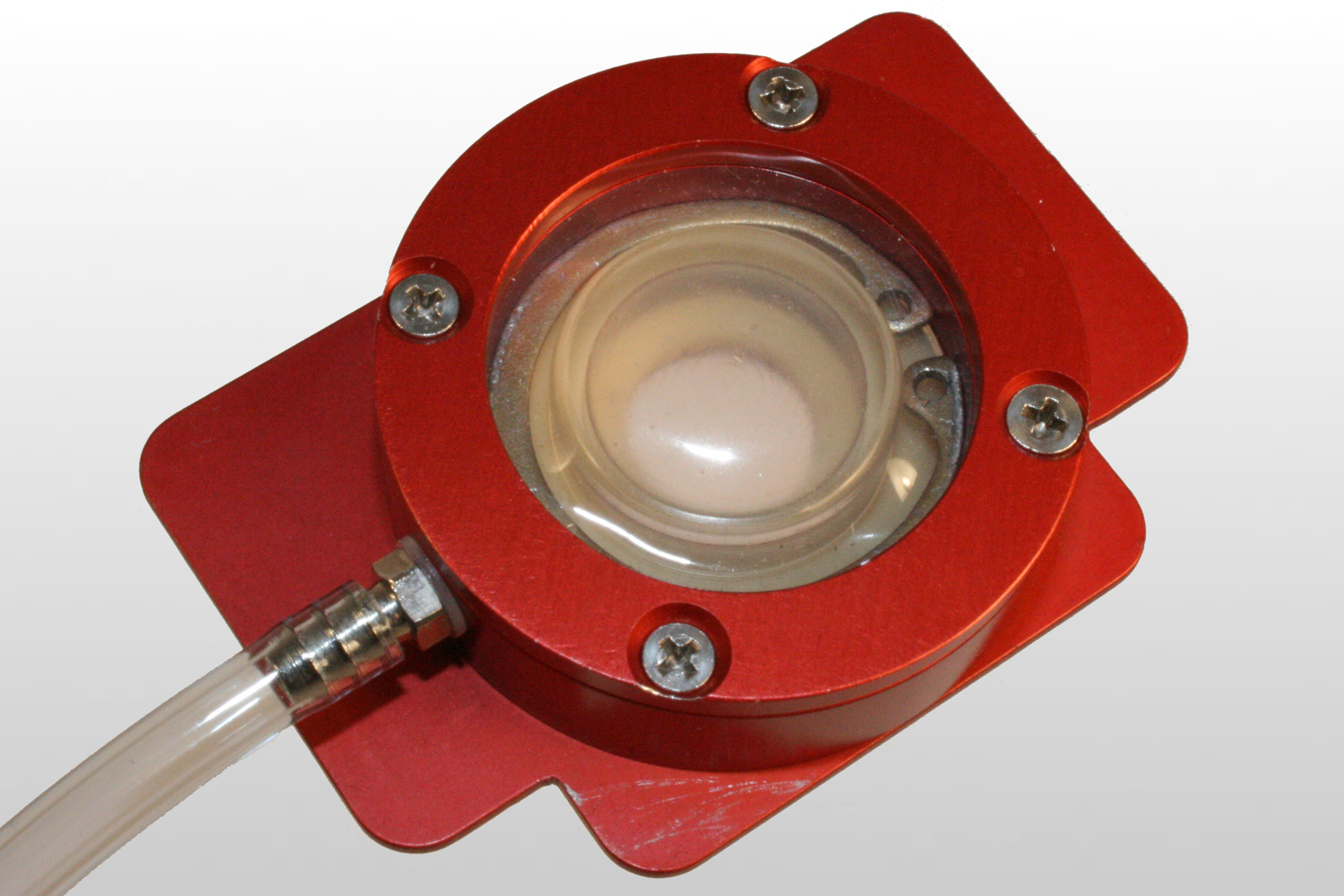 flexercell®的StageFlexerI®(图1)可与FX-6000?细胞牵张加载培养系统,FX-5000?细胞牵张加载培养系统或Flex Jr.?细胞牵张加载培养系统一起使用,以通过倒置物镜观察细胞拉伸作用力下的变化和反应。 细胞在直径54毫米的硅树脂膜(StageflexerI®膜生长表面积= 22.9 cm2)上生长,该膜被夹紧并密封在圆柱形真空室中。 当施加真空时,膜在腔室圆周上平移,对膜表面上的细胞施加应变(图4)。 膜的变形导致对细胞施加均匀的等双轴应变(图4)。