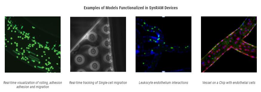 SynRAM microfluidic chips comprising of realistic microvascular networks were used to understand the role of classical inhibitors of individual steps of the leukocyte adhesion cascade. Experimental results matched very well with in vivo data highlighting the unique ability of the platform for real-time analysis of these dynamic events in a morphologically realistic environment (Lamberti et al 2014).