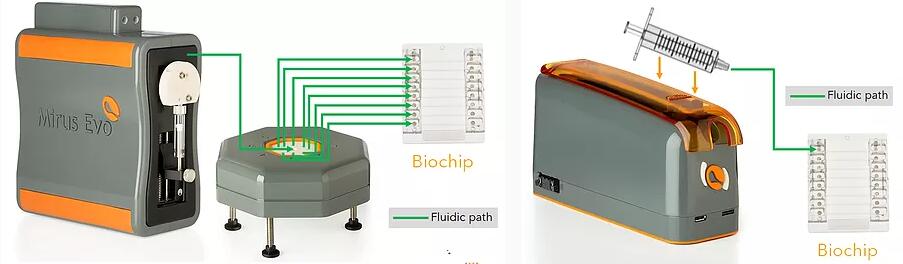 1.2、Cellix 的精密微流體 Mirus Evo 泵和 ExiGo 泵以恒定或可變的剪切應(yīng)力將細(xì)胞樣本或quan血輸送到 Vena8 Fluoro+ 或 Vena8 Endothelial+ 生物芯片的微毛細(xì)血管中。 這模擬了體內(nèi)生理剪切應(yīng)力。
