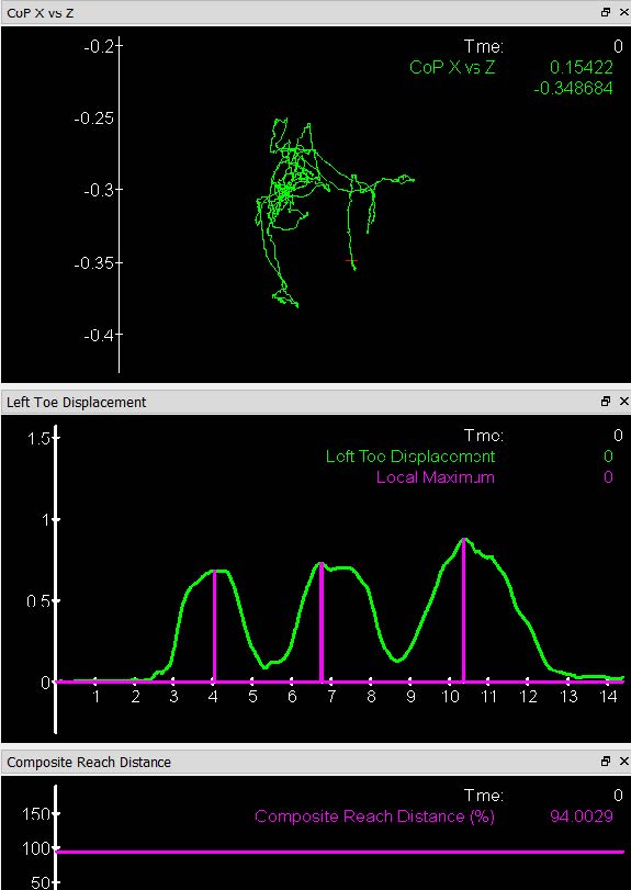 輸出同步壓力中心和運動學數(shù)據(jù),以及用戶定義的測量值,包括局部和quan局大/小搖擺和運動范圍。 實時提供此信息,以便為您的受試者提供即時的表現(xiàn)反饋。