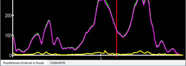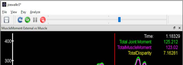 對肌肉應用顏色和不透明度以可視化募集水平。繪制單個肌肉力量以了解單個肌肉的相對貢獻和排序。 比較肌肉力矩和外部關節(jié)力矩。 通過比較內(nèi)部肌肉力矩與總關節(jié)力矩的總和來分析優(yōu)化的質(zhì)量。